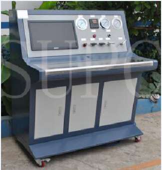 水壓強度試驗機—液壓強度測試台可分為(wei) : 手動按鈕設備、半自動設備、計算機設備三種配置。主要是根據客戶工況要求以及其他要求選型,檢測目的是測試產(chan) 品的工藝檢測流程、常見的有管線、閥門、容器、換熱器或檢修期間因改動而焊接過的工藝管道和設備,以確保各接頭或焊縫強度,使裝置能安全承受正常的操作壓力。基本原理為(wei) :利用現場的低壓氣源,通過18luck新利体育旗舰厅氣動泵完成對高壓的輸出,再由18luck新利体育旗舰厅控製係統完成對壓力的控製和數據的采集,從(cong) 而完成對整個(ge) 水壓強度測試的過程。采用計算機控製試驗過程,利用18luck新利体育旗舰厅編程軟件,最終實現水壓強度檢測的自動化控製,能夠顯示試驗時間、試驗壓力和試驗次數等值,采集水壓/液壓試驗曲線,試驗結果可自動保存,可打印輸出.測試步驟:對測試件進行注液、排氣、密封、增壓、到達壓力後停機,進入保壓計時狀態,完成對被測件的水壓強度測試。一般為(wei) 工作壓力的1.5倍。